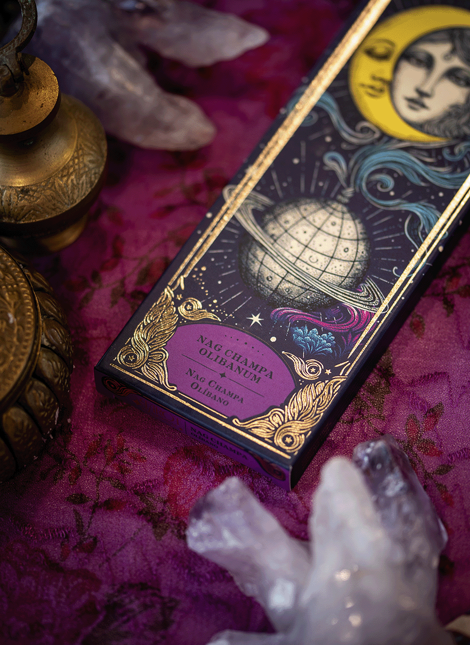 Bețișoare parfumate artizanale, realizate din ingrediente naturale, cu o aromă dulce și amaderată. Combinația exotică de Nag Champa și tămâie olibană este ideală pentru momente de meditație, relaxare și purificare a spațiului, creând un ambient echilibrat și primitor.