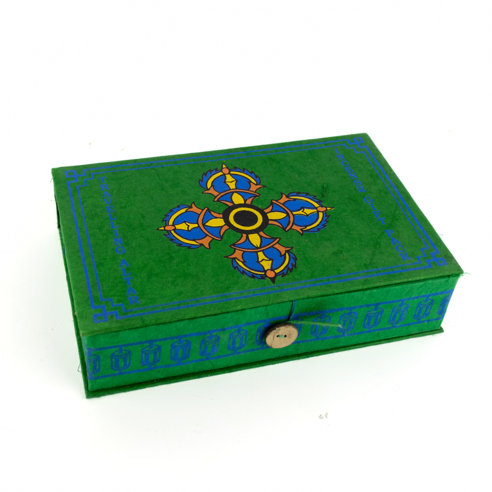 Transforma orice spatiu intr-un sanctuar spiritual cu Setul altar portabil, manufacturat in Nepal, o colectie completa de elemente esentiale pentru fumigatie si meditatie, perfecta pentru cei care apreciaza ritualurile tibetane sau pentru a oferi un dar special.