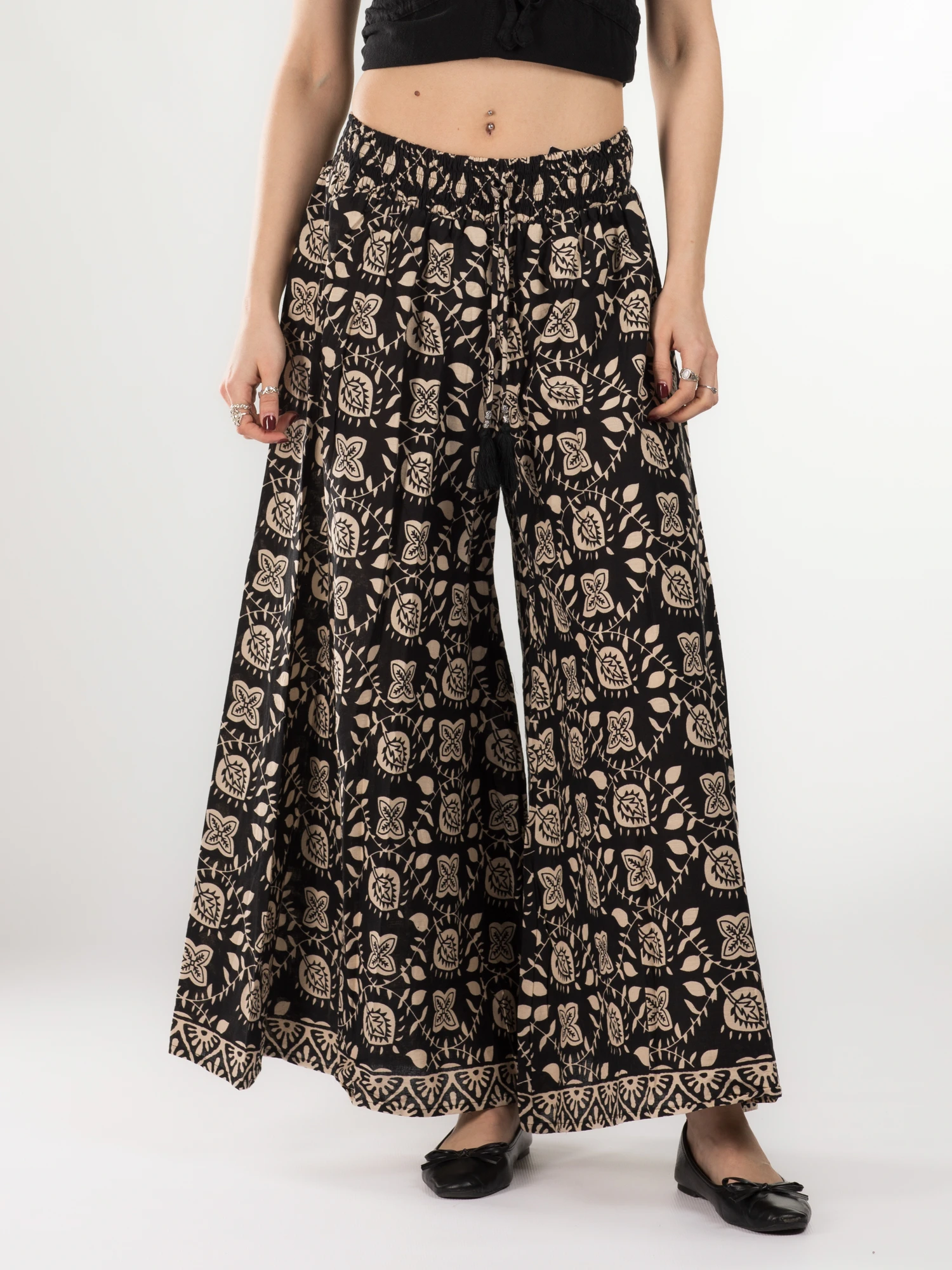 Pantaloni din bumbac evazati cu elastic si snur in talie - Model 15