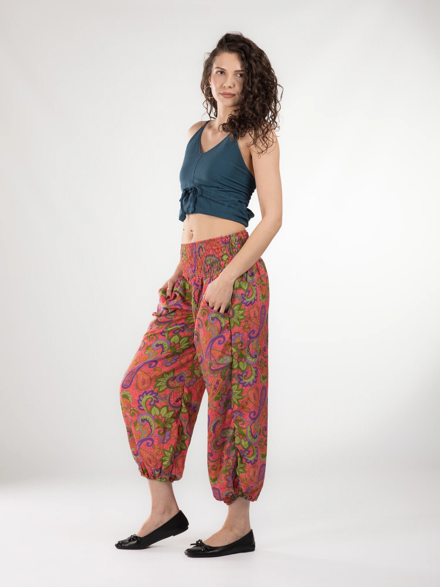 Pantalonii din material fluid (100% vâscoză) sunt concepuți pentru a oferi o senzație de lejeritate și confort pe tot parcursul zilei. Țesătura ușoară se așază natural pe corp, creând un efect elegant și relaxat, indiferent de forma croielii. Fiind free size, se adaptează cu ușurință diferitelor tipuri de siluetă, oferind libertate de mișcare și un plus de versatilitate.