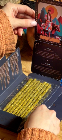 Aceste bețișoare nu sunt doar parfumate – ele creează un spațiu sacru pentru conectare interioară și ghidare spirituală. Vrei să le folosim într-un ritual personalizat sau să-ți traduc mesajele de pe cărțile oracol? Pot să te ajut cu plăcere.